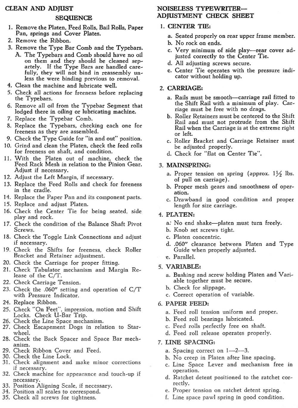 Clean and Adjust Sequence Check Sheet